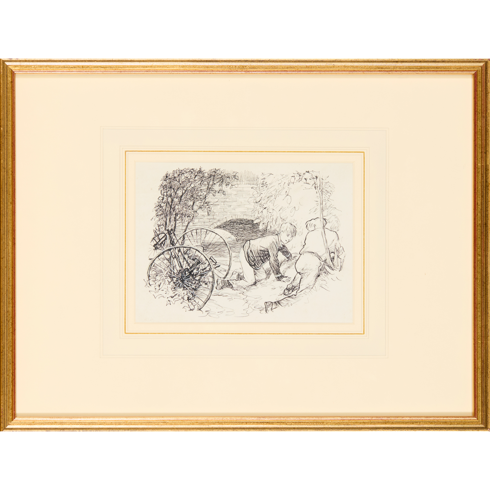 Original illustration, pen and ink on paper, inscribed with title below mount, mounted, framed and glazed, mount aperture 14 x 19cm