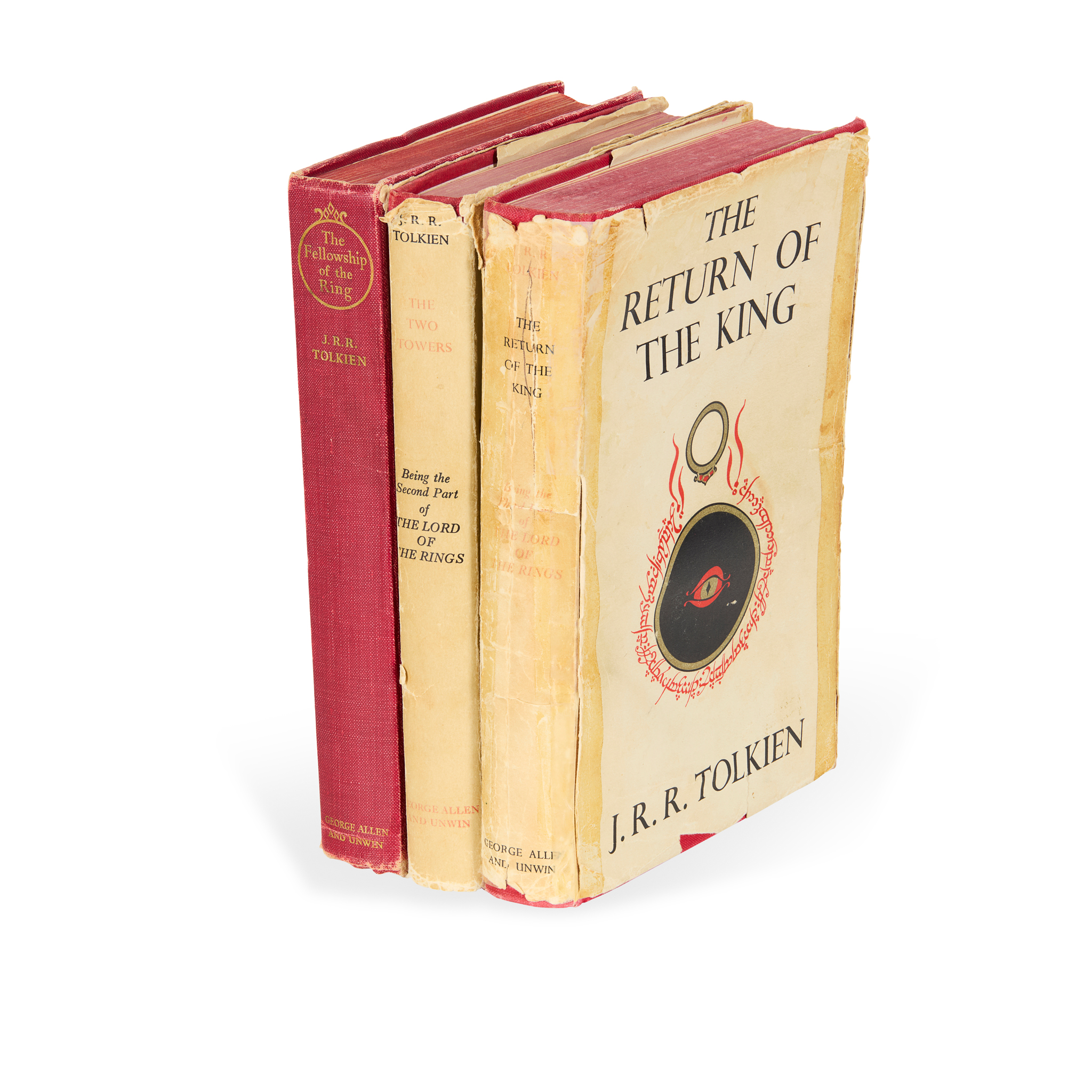 The Return of the King. London: George Allen & Unwin Ltd, 1959. Fifth impression, original red cloth gilt, dust jacket creases repaired with sellotape with a few small tears and slight damp-staining, neat ownership signature to front free-endpaper (3)