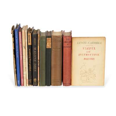Beckett, Samuel. Waiting for Godot. London: Faber and Faber Limited, 1956. First edition, 8vo, original yellow cloth, dust-jacket with some wear and slight chipping; idem. Malone Dies. London: John Calder, [1958]. First edition, 8vo, original black cloth; idem. All That Fall. London: Faber and Faber, [1957]. First edition paperback, 8vo; idem. From an Abandoned Work. London: Faber and Faber, [1958]. First edition paperback, 8vo;