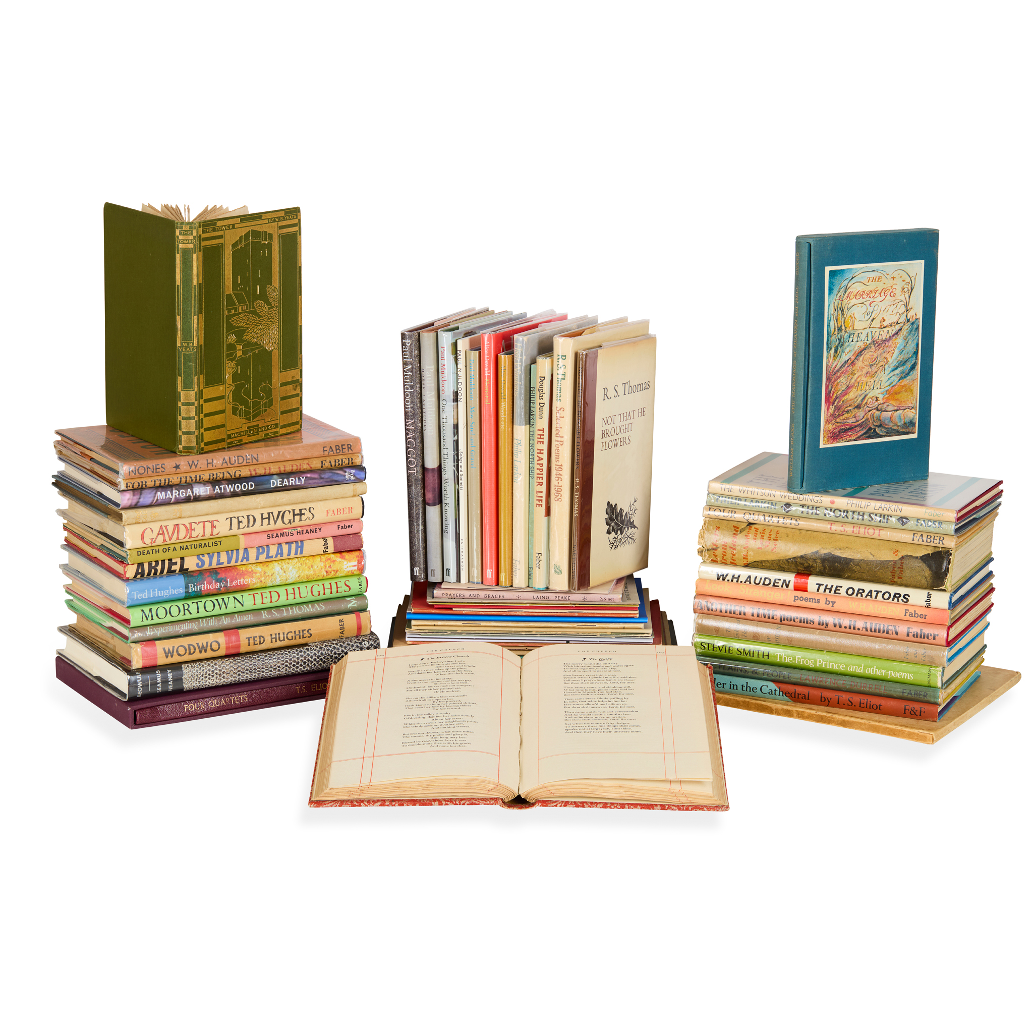 and approximately 80 others (of which approx. 25 pamphlets), including Seamus Heaney, Philip Larkin, Ted Hughes, Paul Muldoon (many signed), W. H. Auden, T. S. Eliot, R. S. Thomas, and others, mixed editions (approx. 90)