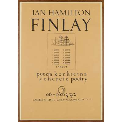 Exhibition Posters: Ian Hamilton Finlay - poezja konkretna - concrete poetry. Galeria Miejsce, 6th - 16th March 1992, large poster framed and glazed;