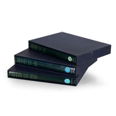 London: published in association with the Directorate of the Topkapı Saray Museum by Sotheby's Publications, 1986. First edition, one of 1,500 numbered copies, 3 volumes, folio, original blue cloth, top edges gilt, dust jackets, blue cloth slipcases, photographic illustrations throughout each volume (colour and monochrome), dust jackets slightly faded on spines, a little dampstaining to final few leaves of volume 1 with some adhesion between two leaves