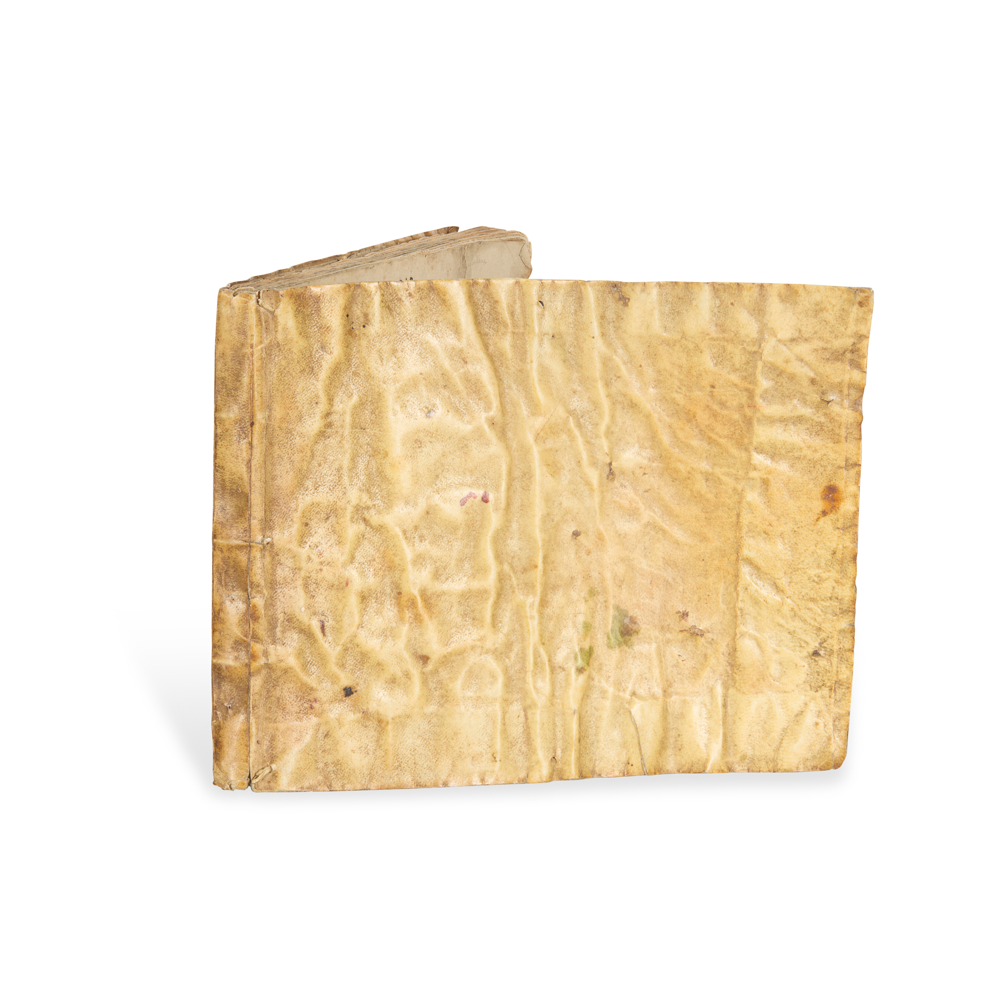 … nachgerissen mit sonderm fleiss durch … Jost Amman. Frankfurt: Georg Raben, Sigmund Feyerabend, and Weygand Hanen heirs, 1565. Second edition, oblong 4to (15.9 x 20cm), [140] ff., a4 A-Q4 R2, contemporary limp vellum, title-page printed in red and black, 130 full-page woodcuts with letterpress captions in Latin and German, extra-illustrated with 2 leaves from another edition of the same work (bound in after C2 and G1, containing 3 woodcuts in total), early Italian inscription to colophon leaf, contents toned, occasional spots and blemishes throughout, lacking front free endpaper, title-page stained and with paper restoration to upper corner affecting a few letters, damp-stain to fore margin of leaves a4-A4, worm-track to lower margins of C3-G1 (touching caption of D3 verso), sigs. Q-R with erosion to upper fore corners touching one word of imprint on colophon leaf [VD16 B 6068]