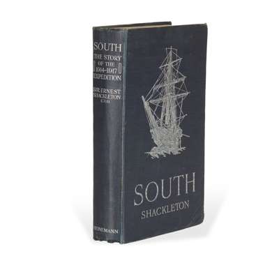 The Story of Shackleton's Last Expedition 1914-1917. London: William Heinemann, 1919. First edition, second impression, 8vo, original black cloth, spine lettered in silver, large pictorial block of the Endurance in silver to front board, all plates as called for (including colour frontispiece, double-page panorama and folding map), extremities slightly rubbed, lower fore corners of boards bumped, a few spots to margins of textblock, folding map slightly nicked and rumpled along fore edge and with closed handling tear to stub not affecting image [Rosove 308.A2]
