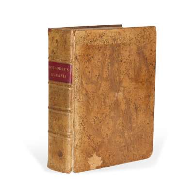 during the Years 1809 and 1810. London: for James Cawthorn, 1813. First edition, 4to, [3] viii-xix [1] 1152 pp., contemporary marbled calf, engraved frontispiece, 17 hand-coloured aquatint plates (including 7 double-page views), 2 engraved folding maps, sepia-printed etched plate, 2 facsimile letters, 2 plates of Greek music, bound without ‘Advertisement' at front (a2-3), joints splitting at head and foot, frontispiece laid down, title-page and first leaf of list of contents frayed, first folding map clumsily folded, with split to one fold and reinforcements to verso, contemporary marginalia to pp. 143 [Atabey 524; Blackmer 821; cf. Abbey Travel 202 for the second edition]