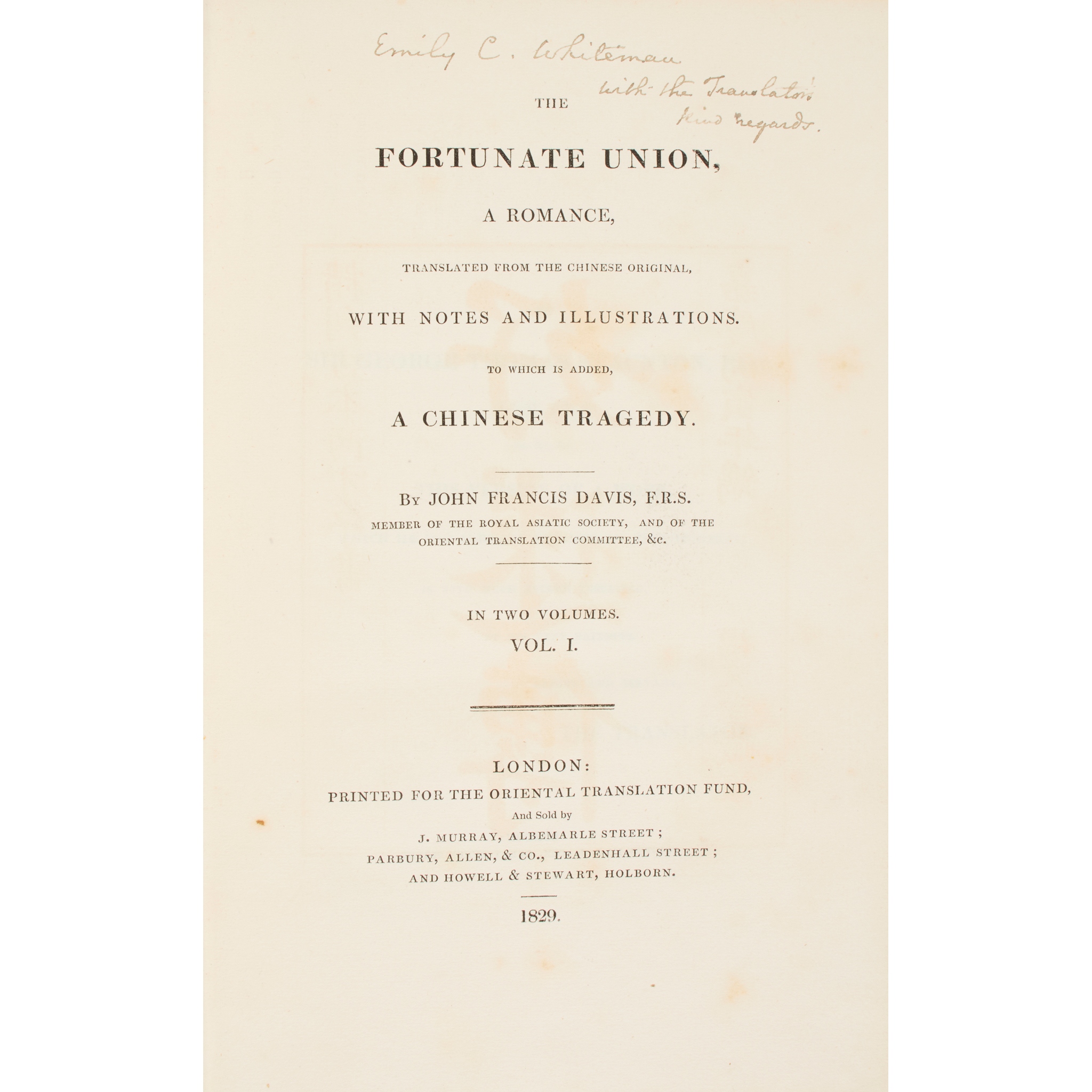 London: Printed for the Oriental Translation Fund, and sold by J. Murray etc., 1829. First edition in English, 2 volumes, 8vo, lithographed facsimile of Chinese text and map as frontispieces, original blue boards with paper labels to spines, inscribed to “Emily C. Whiteman with the Translator's kind regards”, a little light foxing, joints slightly split (2)