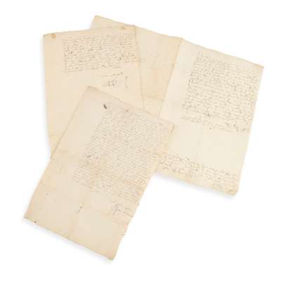 Erskine, John, Earl of Mar. Letter, signed, to Hugh Rose as Regent of Scotland, dated 9th September 1571, remarking on the “unhappy accident” of the Earl of Lennox's ‘murder’ “casting the state lowis, and the nobilitie and thre estatis considering alsweel the danger of the kingis Maiesties innocent persoun”, he announces his regency and writes: “Praying and desiring yow eftectuuslie to comfort yourself, your freindis, and nychtbouris, requiring thame to continew in thair constancy to the king and his seruice, nor shrinking for thti awaytaking of my lordis grace his guidsir and lait regent, quhilk rather hes proourit farder indignatioun to our aduersaries, nor put tham in better state, sen sic spedy order is takin to prosequute the mater, quhill God put it to a finale end…”, signed John Regent, 32 lines on paper, 20 x 30.5cm [Rose, Shaw & Innes pp.256-7];