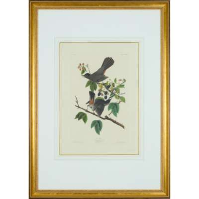 Turdus Felivox. London: R. Havell, c.1827-38. Engraving with etching, aquatint and hand-colouring by Robert Havell after John James Audubon, mounted, framed and glazed, plate size 48.5 x 30.8cm, mount aperture 58.8 x 41cm, not examined out of frame