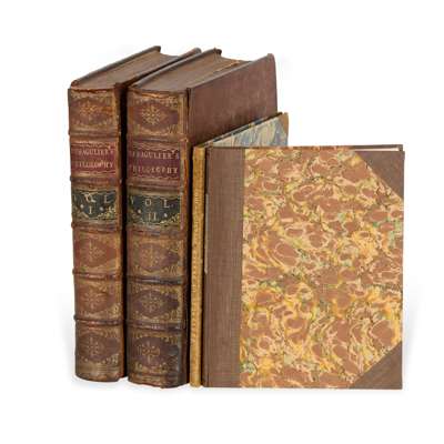 The Third Edition Corrected. London: A. Millar [and others], 1763. 2 volumes, 4to, contemporary calf, 78 engraved folding plates, contemporary bookplates (J. Ibbetson of Leeds), volume 1 with damp-staining to lower sections of covers and outer leaves with concomitant loss to endpapers and final two leaves of index, volume 2 with stronger damp-staining causing loss of lower third of title-page and dedication, adhesion and occasional paper disruption to foot of pp. 231-66 and intervening plates 20 and 21. Together with two 17th-century pamphlets: The Pretences of the French Invasion Examined, for the Information of the People of England, London: R. Clavel, 1692 (4to, [4] 16 pp., 20th-century half sheep, imprimatur leaf); [G. Burnet], AN Enquiry into the Present State of Affairs: an in Particular, whether we owe Allegiance to the King in these Circumstances?, London: John Starkey; and Ric. Chiswell, 1689 (4to, 16 pp., modern half cloth, title-page repaired) (3)