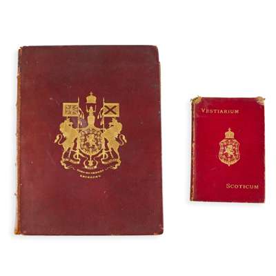 together with: The Genuineness of The Vestiarium Scoticum. I. The Charges Made by the Quarterly Review, reprinted from Volume 81, 1847. II. A Reply to the Quarterly Review Upon the Vestiarium Scoticum, Reprint of a very scarce Pamphlet, published by William Blackwood & Sons, Edinburgh, and Charles Dolman, London, in 1848. Privately printed [n.d., 1848 onwards]. 23 x 15cm, contemporary red morocco, gilt coat of arms and title to front board, gilt title to spine, bookplate to paste down endpaper, library stamp to title page, corners and edges of boards worn (2)