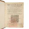 Militello: Giovanni de' Rossi da Trento, 1617. First edition, 4to in 8s (19.4 x 14cm), sigs. A-2R8 (register erroneously has 2S as final quire), 556 [88] pp., contemporary sprinkled calf, gilt spine, marbled edges, woodcut chessboard vignette to title-page, similar full-page illustration to p. 531, woodcut arms to verso of title-page, diagrams on pp. 34 and 35, joints cracked but remaining firm