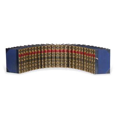 Scott, Sir Walter. Waverley Novels. Edinburgh: Adam & Charles Black, 1871. ‘Centenary Edition’, 25 volumes, 8vo (18 x 11.5cm), contemporary dark blue half calf, richly gilt spines, top edges gilt, steel-engraved frontispieces, vignette title-pages and plates;