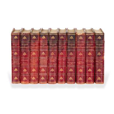 Stevenson, Robert Louis. [The Works]. Boston: Jefferson Press, c.1900. 10 volumes, 8vo (20.5 x 13.5cm), contemporary red half roan, marbled sides, top edges gilt, others untrimmed, plates, a little rubbing and wear to bindings, a few spines darkened, textblocks toned;