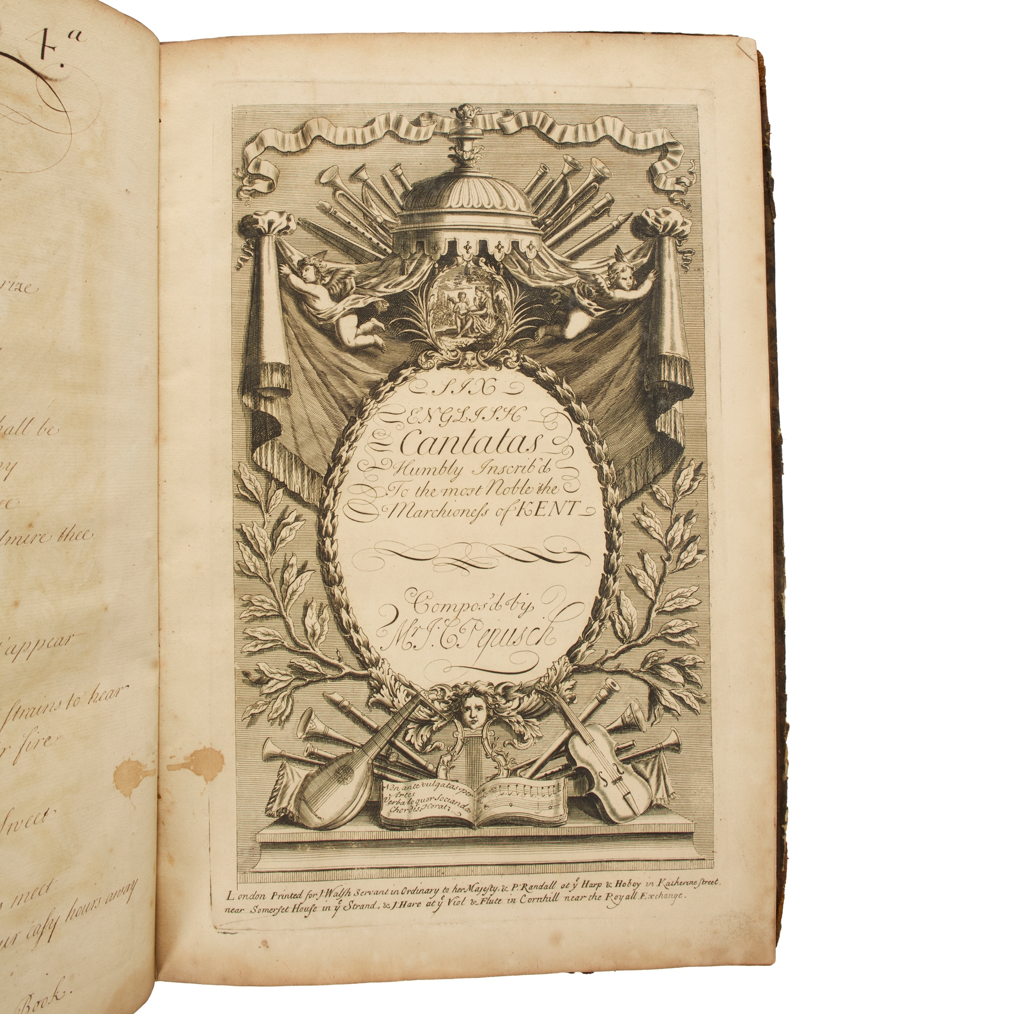 London: J. Walsh, [n.d. but c.1710?] Folio (35.5 x 24cm), 31 pages of printed music with an additional 6 pages of manuscript lyrics, contemporary decorated paper boards with later brown morocco spine