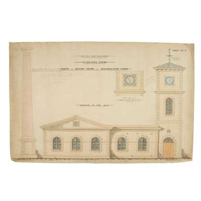 All showing designs for the engine room, boiler house and accumulator tower, numbered 2-13, each approx. 55 x 76 cm (except no. 12, smaller), and all backed on linen (except nos. 11-13, no. 11 frayed, no. 13 with crude tape-repair to verso), all with the signature of James Deas as engineer-in-chief to the Clyde Navigation Trust lower right, the plans all somewhat dust-soiled overall