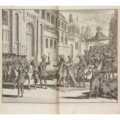 Done into English from the original Spanish of Don Antonio de Solis ... By Thomas Townsend. London: T. Woodward, 1724. First English edition, folio, engraved portrait, 6 plates (including one double-page and one folding, with some loss), 2 maps, contemporary panelled calf, rubbed, previous ownership details torn away from front free-endpaper
