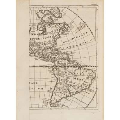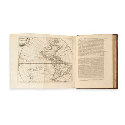 tam veterm quam novam … quibus in hac editione Londinensi accedunt additamenta plurima ad historiam et geographiam … London: typis M. Jenour, impensis Joannis Nicholsoni, 1711. First London edition, 4to (23.8 x 17.5cm), contemporary sprinkled calf, red morocco label, [14] 429 [47] pp., engraved additional title-page by John Sturt showing Queen Anne enthroned among exotic supplicants (sig. A1), 59 engraved maps and plates of 61 (nearly all folding), bound without plates 1 ('Tabula Ventorum') and 52 ('Veteris Germaniae'), plate 4 ('Typus orbis terrarum') with small hole to allegorical figure at corner, small handling tears to 21 ('Campania …'), 61 (‘Templum Solomonis’) with long closed tear, a few maps bound at different places from those indicated in index (53, ‘Germanorum veterum vestimenta’, facing p. 69; 49, ‘Fluvii Galliae’, p. 117; 54, ‘Cataractae Rheni', p. 117); 43, Africa, p. 335), binding slightly rubbed, old staining to p. 1