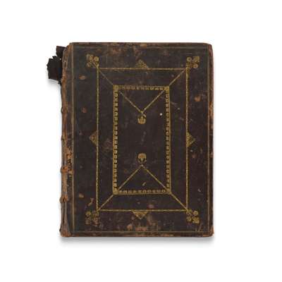 London: the Deputies of Christopher Barker, 1599. 4to in eights (21.5 x 16cm), 18th century black calf panelled in gilt, all edges gilt, The Psalms of David in Meter (Edinburgh: the Heirs and Successors of Andrew Anderson, 1709) bound in at rear, covers rubbed, spine peeling, Bible lacking an initial leaf (blank?), some headlines shaved, some light damp-staining, occasional tears and holes with slight loss to letters on 3p2 and other leaves, I3 torn lacking lower corner and several words