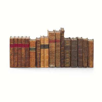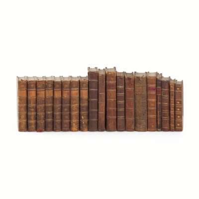 [L'Estrange, Roger]. Sammelband of pamphlets on religious and political matters, late 17th century. 4to, contemporary mottled calf, gilt spine (lacking label), contents comprise: 1) The Holy Cheat. London: Joanna Brome, 1682, ownership inscription of Archibald Stirling to title-page; 2) The Reformation Reform'd: or, a Short History of New-Fashioned Christians. London: Joanna Brome, 1681; 3) The Dissenters Sayings. London: Joanna Brome, 1683, 2 parts, fourth and second editions; 4) Notes upon Stephen College. London: Joanna Brome, 1681. Second edition; 5) Citt and Bumpkin in a Dialogue over a Pot of Ale, concerning Matters of Religion and Government. London: Joanna Brome, 1681. 2 parts, fifth and fourth editions; 6) A Further Discovery of the Plot. London: Henry Brome, 1681. Fourth edition; 7) Discovery upon Discovery. London: Henry Brome, 1680. Second edition; 8) Narrative of the Plot. London: printed by J.B. for Hen. Brome, 1680. Third edition; 9) Case of a Civil Dialogue betwixt Zekiel and Ephraim. London: H. Brome, 1680. Second edition; with 3 further tracts bound in at rear (extensively eaten away);