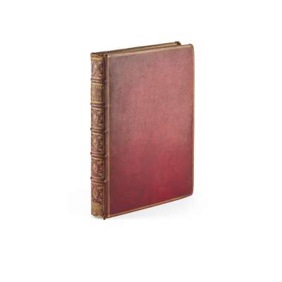 Amsterdam: Martin Schagen, 1724. 4to (29 x 21.5cm), two parts in one volume, each with full-page engraved frontispiece, illustrated with half-page engraved illustrations throughout, 2 title-pages in red and black, contemporary full red morocco, triple gilt filet on covers, spine decorated gilt in compartments, gilt edges, loss to foot of spine