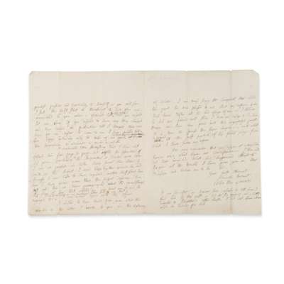 4. undated, probably 1729, on the dispute with Campbell (‘I send you with this letter my answer to Mr George Campbell which I publish with regret being so far from delighting in such a difference that I have the greatest dislike at a publick dispute of this Nature'), also mentioning a debt of six guineas to Abraham de Moivre, small closed tear to first leaf and seal tear to second with no loss of text, 3 pages;