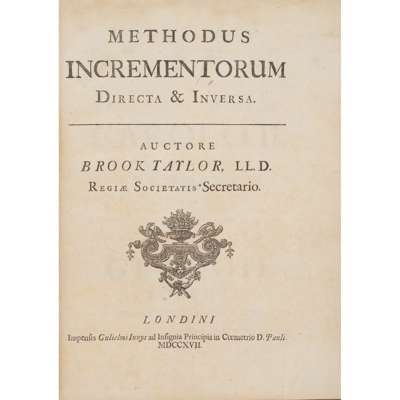 The Methodus incrementorum was first published in 1715; copies with a 1717 title-page are described by ESTC as ‘probably a reissue of the 1715 edition with the first two preliminary leaves reset’. The work introduced what is now known as ‘Taylor’s theorem', a process for expanding functions into infinite series, and is considered one of the foundational works in the calculus of finite differences. It represented an important advance on the ideas expounded by Newton in his 1711 paper ‘Methodus differentialis’, as did Stirling's book Methodus differentialis, which was published in 1730 and cites Taylor's work (at page 24). The earliest evidence of Stirling's engagement with the Royal Society is the record of his attendance at a lecture given by Taylor on logarithms and numerical solutions to equations in April 1717.