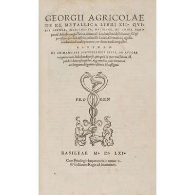 Second edition of 'the first systematic treatise on mining and metallurgy and one of the first technological books of modern times' (PMM), five years after the first edition of 1556, likewise the work of master Basel printer Hieronymus Froben. ‘De Re Metallica was for so long the standard work on mining and metallurgy, and it was followed by most of the writers who succeeded Agricola. Not one of their works, however, was on the same scale, was so systematically arranged, so well and classically written, so entirely based on persona and practical experience. Besides, Agricola’s treatise abounds with woodcuts which are vigorous and artistic, and give a picturesque and vivid delineation of the processes and machinery. The works are also furnished with vocabularies of technical terms and indices. For chemistry the De Re Metallica is of much interest, for, besides the general metallurgical processes described … there are sections upon assaying, cupellation, preparation of salts … the distillation of nitric acid, and so on. Agricola was the pioneer of mineralogical science in modern Europe' (Ferguson).