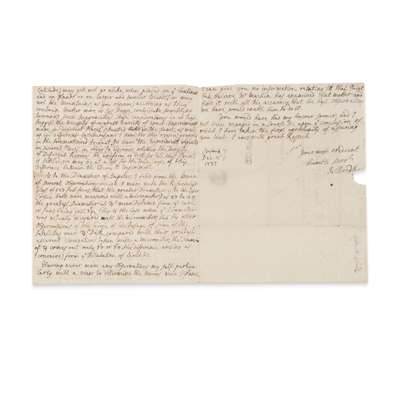 dated Oxford, 2nd December 1733, regarding ‘The Figure of the Earth’ and ‘The Jamaican Experiment’: 'I apprehend this Retardation of the Clock (so much greater than what is derived by a Computation founded on the Principles of Gravity and an Uniform Density in ye several parts of the Earth) must be rather ascribed to an inequality in the Density of the parts of ye Earth near which the Clock is fix'd, than to the greater Heat. For the greatest part of the force of Gravity upon any particular Body arising from the parts of the Earth that are near it …', 3pp., 18.5 x 22.5cm, a little tear to signature with slight loss