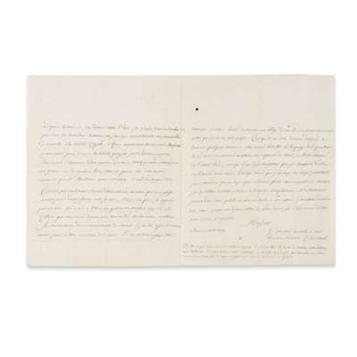 dated Paris, 2nd October 1738, 3 pages, in French, evidently the first letter in any correspondence between them, apologising for inadvertent similarities between his recent memoir on ‘La figure de la Terre’ sent from Lapland to the Royal Society and Stirling's own article on the subject from the Philosophical Transactions, and requesting Stirling's comments on his second memoir on the subject, 18.5 x 22.5cm