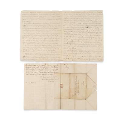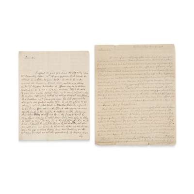 First letter, ‘Thursday morning’, otherwise undated, possibly c.1733, on a dispute with Bernoulli, noting that ‘I shall be able to give him entire satisfaction as to every objection that he makes' on ‘whether there be a point in his locus from whence the planet will appear to move equally swiftly in the apsides and one of the middle distances', and requesting to raise the matter at the Royal Society, addressed ‘To Mr Stirling at the Academy in little Tower Street’ on integral address leaf, faint pencilled annotation ‘Mr Gregory, Mr Klingensterna, Mr Campbell, Mr [?], 2 for myself’ at end of letter, possibly by Stirling, 2 pages, 20 x 16cm;