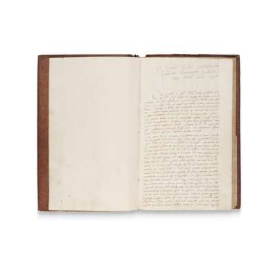 Angers, 29 November 1673. Manuscript in Latin, folio (28.8 x 18.2cm), [86] pp., approx. 50 lines to the page, closely written in a 17th-century British (probably Scottish) hand, followed by 40 pp. in a later hand (c.1775), comprising copies of the letters of Jonathan Swift, manuscript list of accounts to rear free endpaper headed ‘Ane accompt of the monie I depursed the tyme I was at Angers’, beginning ‘I was seven moneths at Angers’ (the leaf torn with loss and with mathematical calculations on verso), spine lined medieval manuscript waste (on vellum, in Latin, retaining several decorative initials), contemporary mottled calf, a few small worm-tracks, tear to head of spine