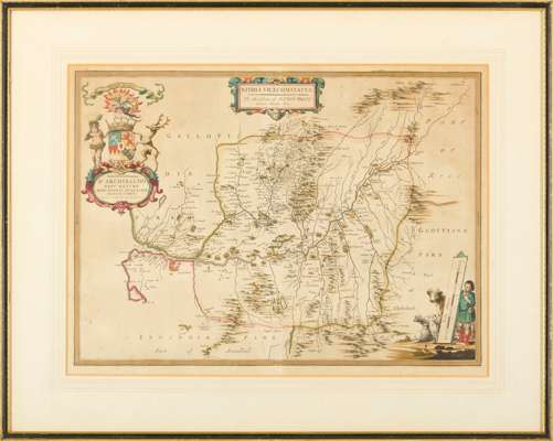 Nithia Vicecomitatus. The Shirifdome of Nidis-dail. [Amsterdam: Joan Blaeu, 1654]. Map of Nithsdale (58 x 73cm, mount aperture 41 x 55cm), some browning and minor spotting;