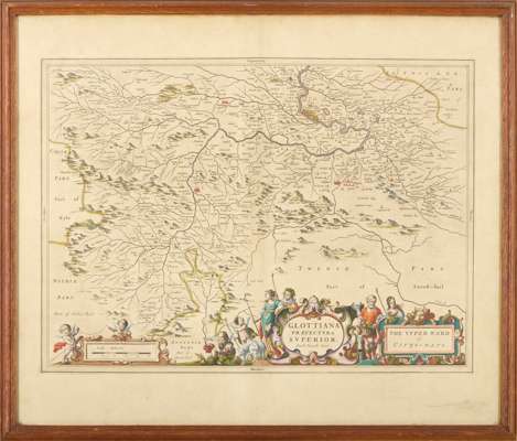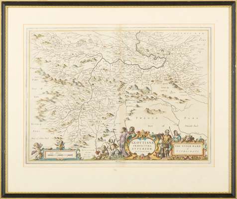 [ 2 copies] Glottiana Praefectura Superior … The Upper Ward of Clyds-dayl. [Amsterdam: Joan Blaeu, 1654]. Map of Upper Clydesdale, first copy (56.8 x 68cm, mount aperture 40.5 x 54.5cm), central fold in sheet has been repaired on back, some soiling around the edges, second copy (55 x 67 cm), some creasing and browning;