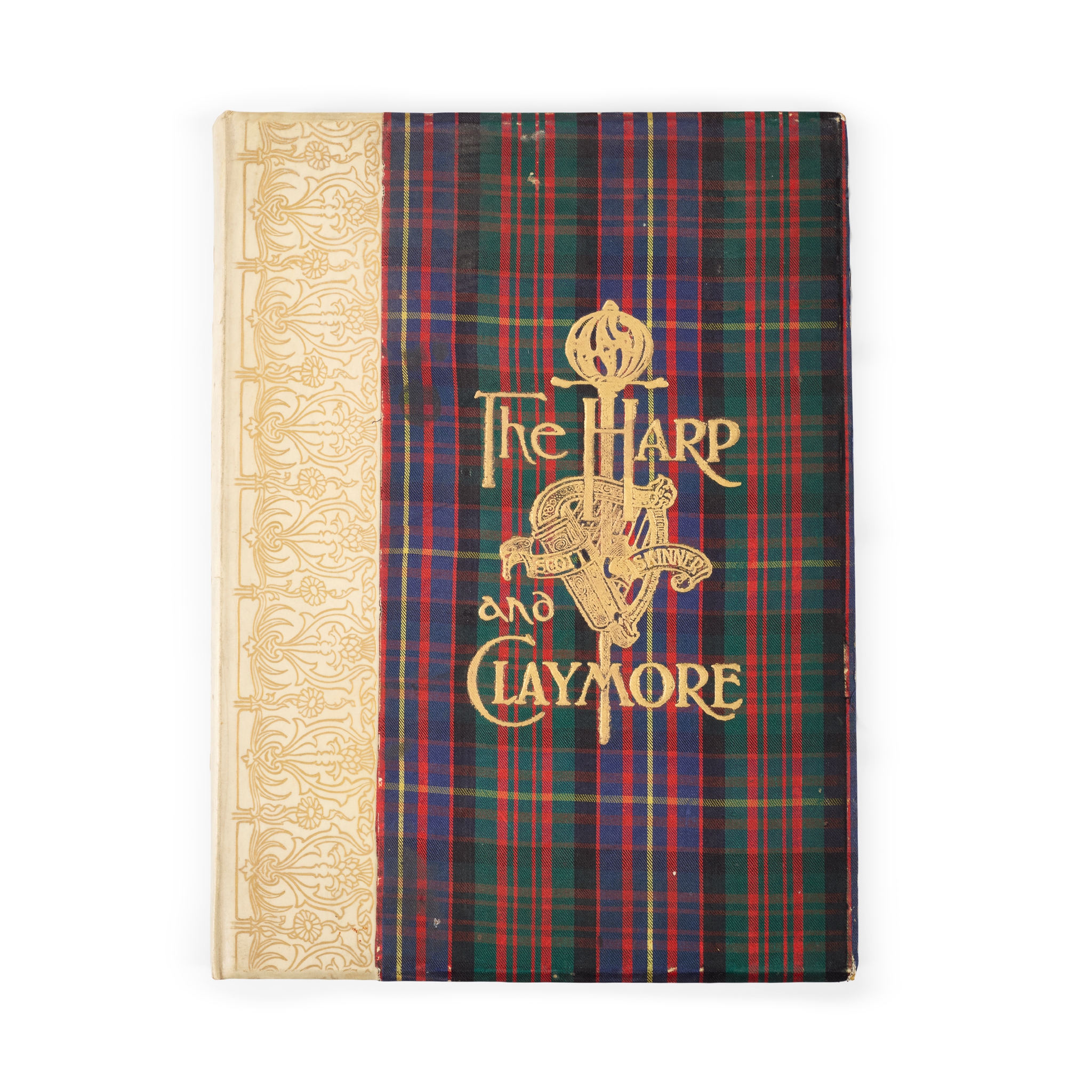A Volume of Music, Original, Selected, and Traditional, comprising Pastorals, Marches, Strathspeys and Reels, Hornpipes, Laments, Songs, Etc., for Voice, Violin, Bagpipe, Pianoforte, Etc. Edited with an Introduction on the Strathspey by Gavin Greig. London: Bayley & Ferguson, c.1903. First edition, inscribed by the author with a lengthy message to ‘Mrs C. Stewart Hunter and the Dr’ on the front free endpaper (the inscription dated Carnoustie, 1915), folio (35 x 26cm), 182 pp., original quarter vellum, backstrip lettered and decorated in gilt, tartan-pattern silk sides stamped in gilt, all edges gilt, a little fraying to silk;