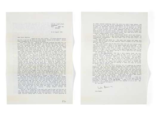 Detailed signed letter discussing his novels & the creative process, 14th August 1986