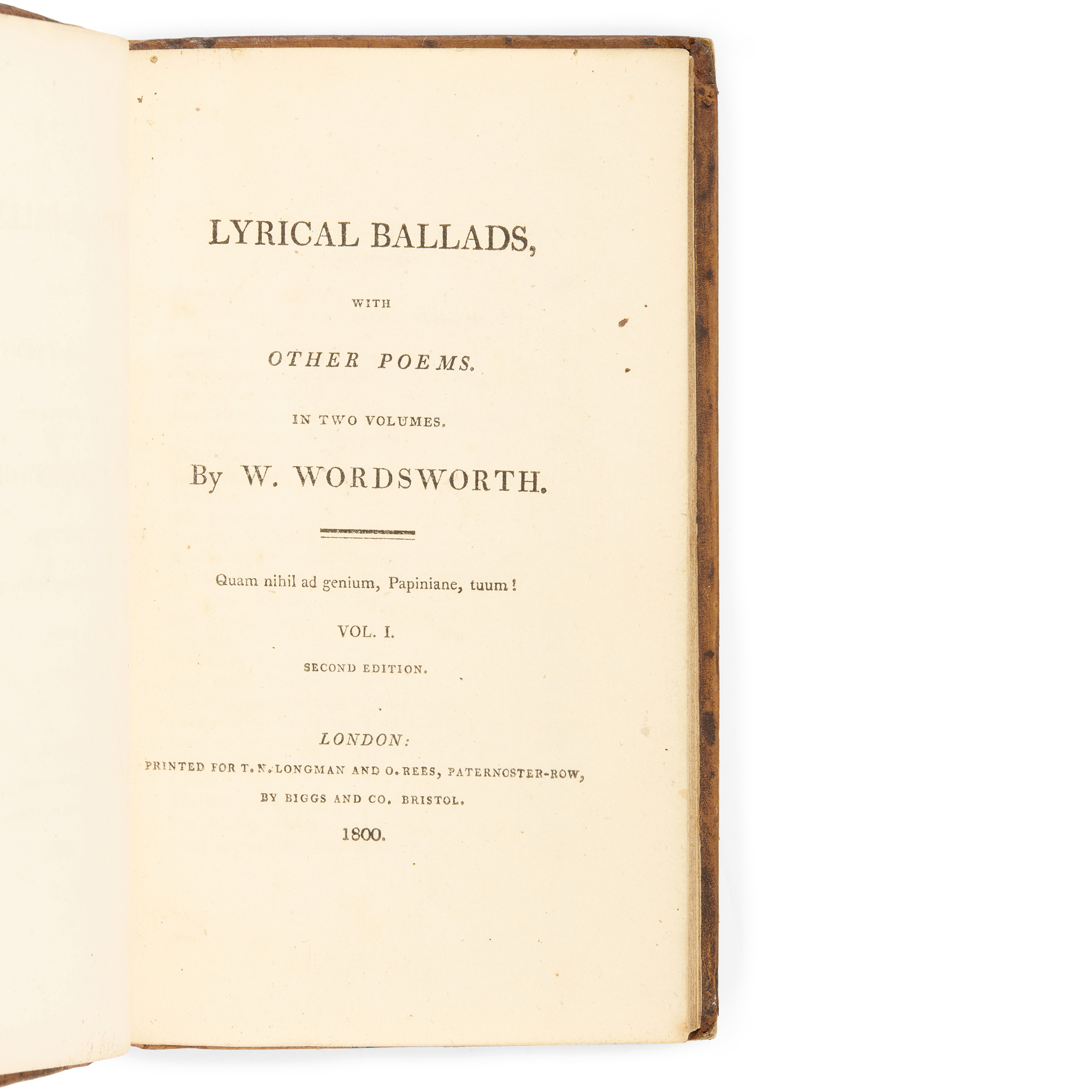 First complete edition, comprising the second edition of the first volume, expanded to include Wordsworth's famous preface, considered the manifesto of the Romantic movement, and the first edition, first issue of the second volume, which contains nearly 40 new poems.