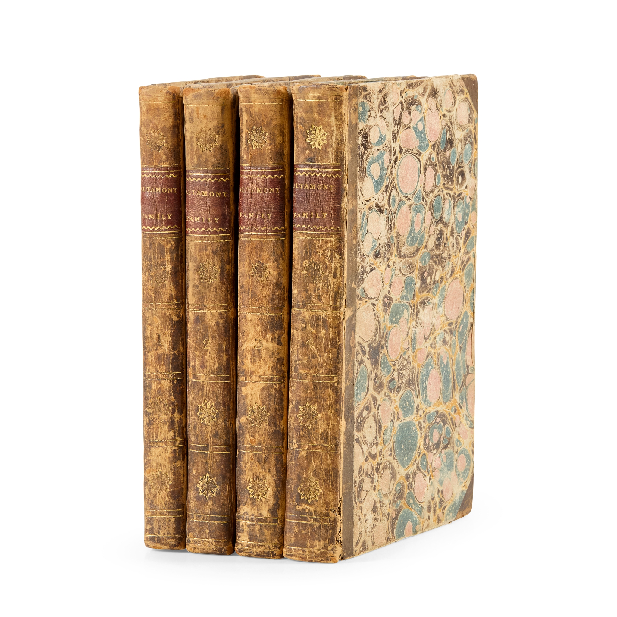A Novel. In Four Volumes. By the Author of the Sicilian. London: printed at the Minerva Press, for William Lane, 1800. First edition, 4 volumes, 12mo (17.5 x 10cm), [4] 250 [2], [4] 266 [2], [4] 306 [2], [2] 365 [2] pp., contemporary half calf, smooth spines gilt in compartments, red morocco labels, marbled sides, blue sprinkled edges, half-titles to volumes 1-3, final advertisement leaf to each volume, contemporary ownership inscriptions to title-pages, volume 1 with old staining to pp. 137-8, volume 2 D4 with lower fore corner excised not affecting text, volume 3 with closed tear in H3, staining to fore margin of last gathering, a few trivial marks elsewhere [ESTC T89386] (4)