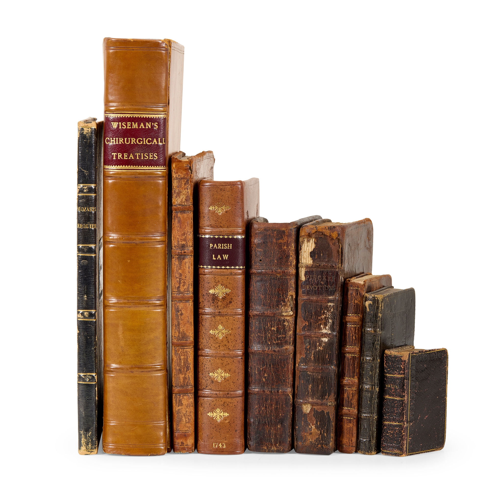 Mozart, Wolfgang Amadeus. Missa pro defunctis Requiem. Klavierauszug von C. G. G. Schwenke. Leipzig: Breitkopft und Härtel, [undated]. Oblong 4to, contemporary straight-grain purple half morocco, engraved frontispiece and title-page, 60 pp. engraved music, additional imprint of Charles Lissner, St Petersburg on slip pasted to title-page, morocco label of Edward I. Cooper to front board and his bookplate to verso of title-page;