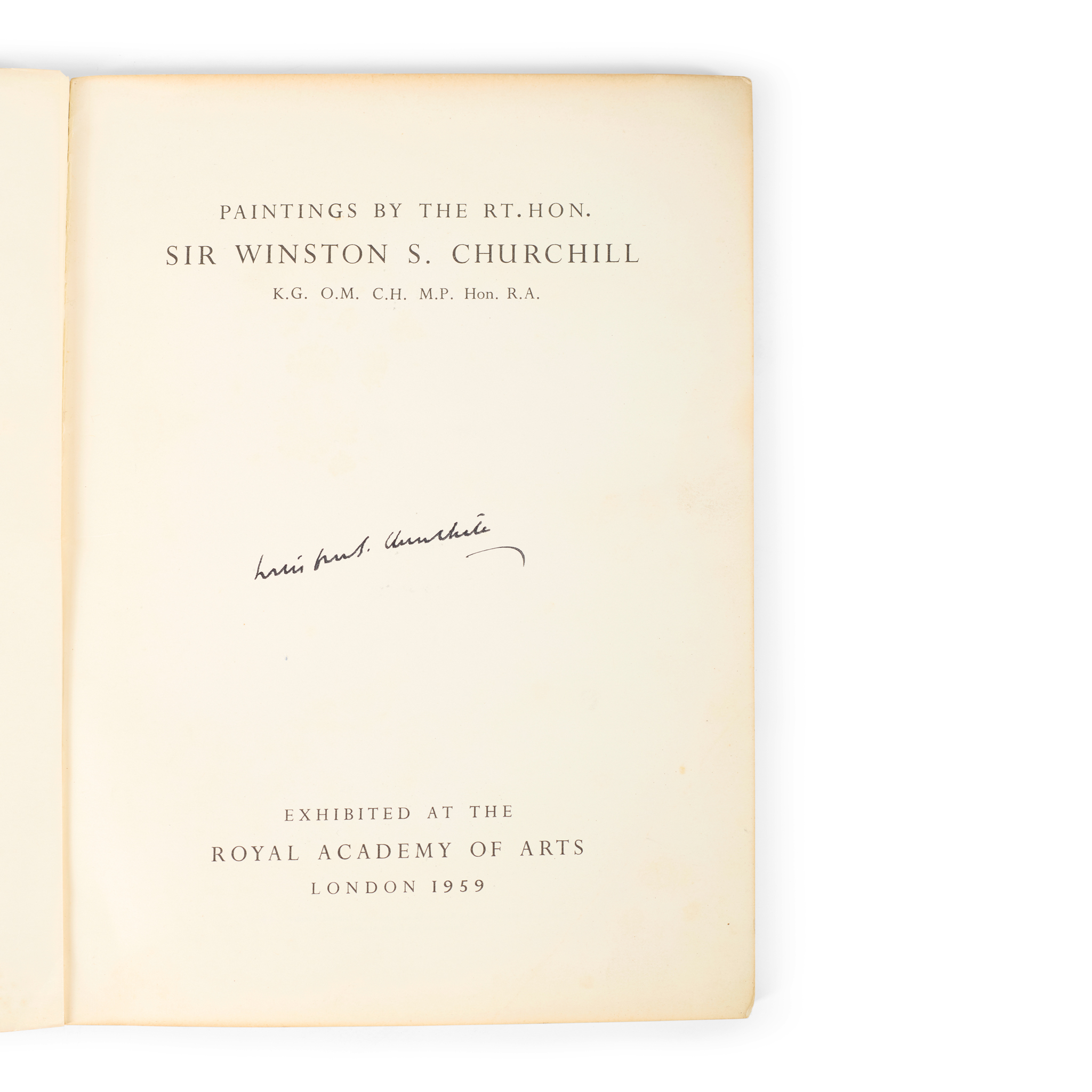 exhibited at the Royal Academy of Arts, London 1959. Signed ‘Winston S. Churchill’ in black ink on the title-page, 4to, card covers with some fading and slight marking