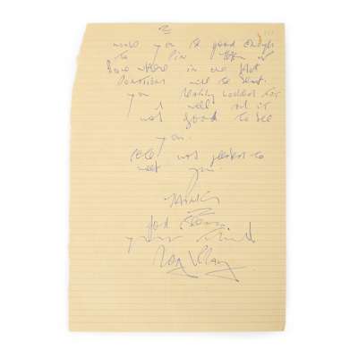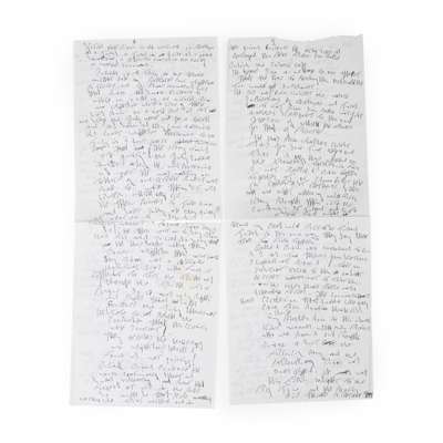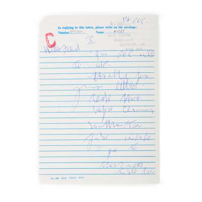 50 letters written by Reggie Kray from Parkhurst and Gartree prisons in 1986-7, mainly to Dinenage, and 10 letters by Ronnie Kray from Broadmoor prison to Dinenage during the same period; with various other hand-written anecdotes and recollections by Reggie Kray; photocopies (including one of a fax to the Krays from American heavyweight boxer Joe Louis); typescript documents; a copy of the first edition of Reggie Kray's book ‘Slang’ [1984], co-written with Stephen Tully, with manuscript inscription by Ronnie Kray; various other Kray-related letters collected by Dinenage including a copy of a typewritten letter by him from 1988 to American actor Charlton Heston requesting a foreword to ‘Our Story’ (Heston had attended the Krays' trial in London in 1969, but did not supply a foreword); miscellaneous envelopes and a press clipping; a copy of ‘Harley House Journal’ for August 1994.