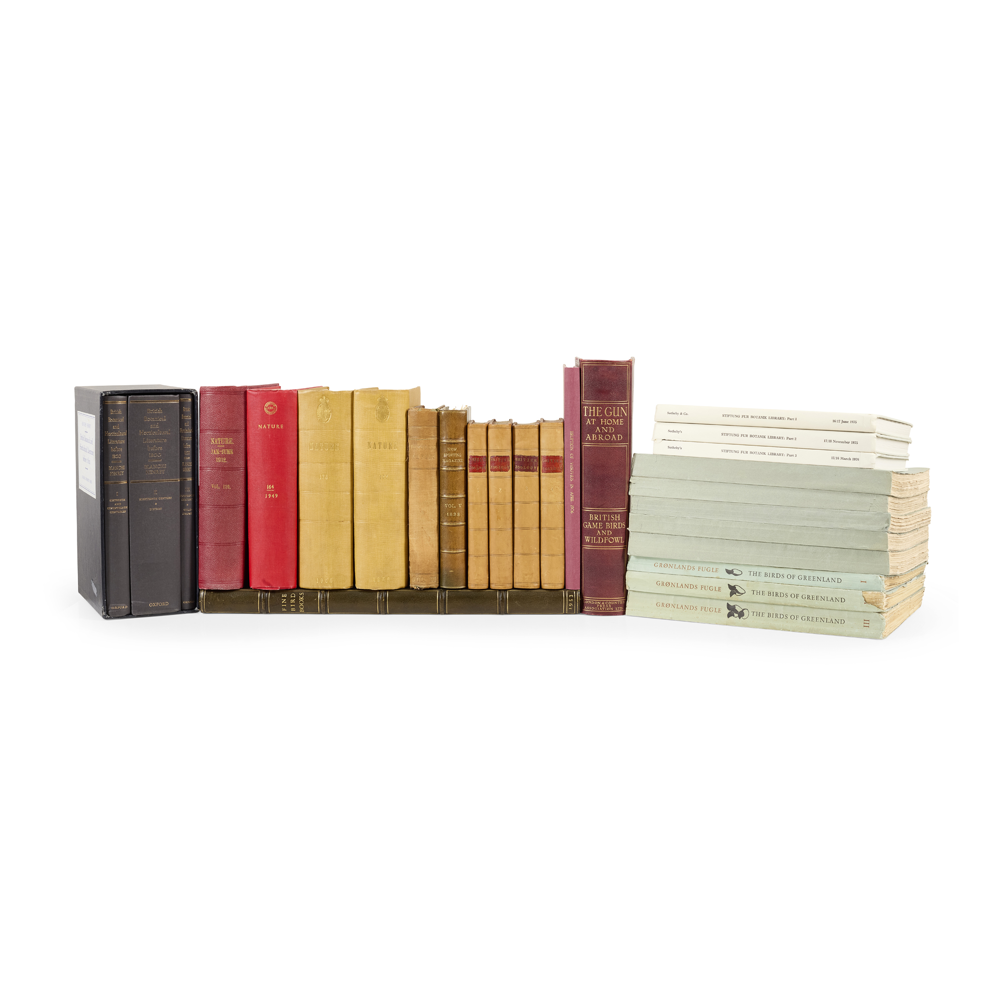 Sotheby & Co. The Magnificent Botanical Library of the Stiftung für Botanik, Vaduz, Liechtenstein, Collected by the late Arpad Plesch. [London: Sotheby & Co., 1975]. 3 volumes, hardcover, auction catalogue with numerous plates (illustrations and facsimiles), with dust jackets;