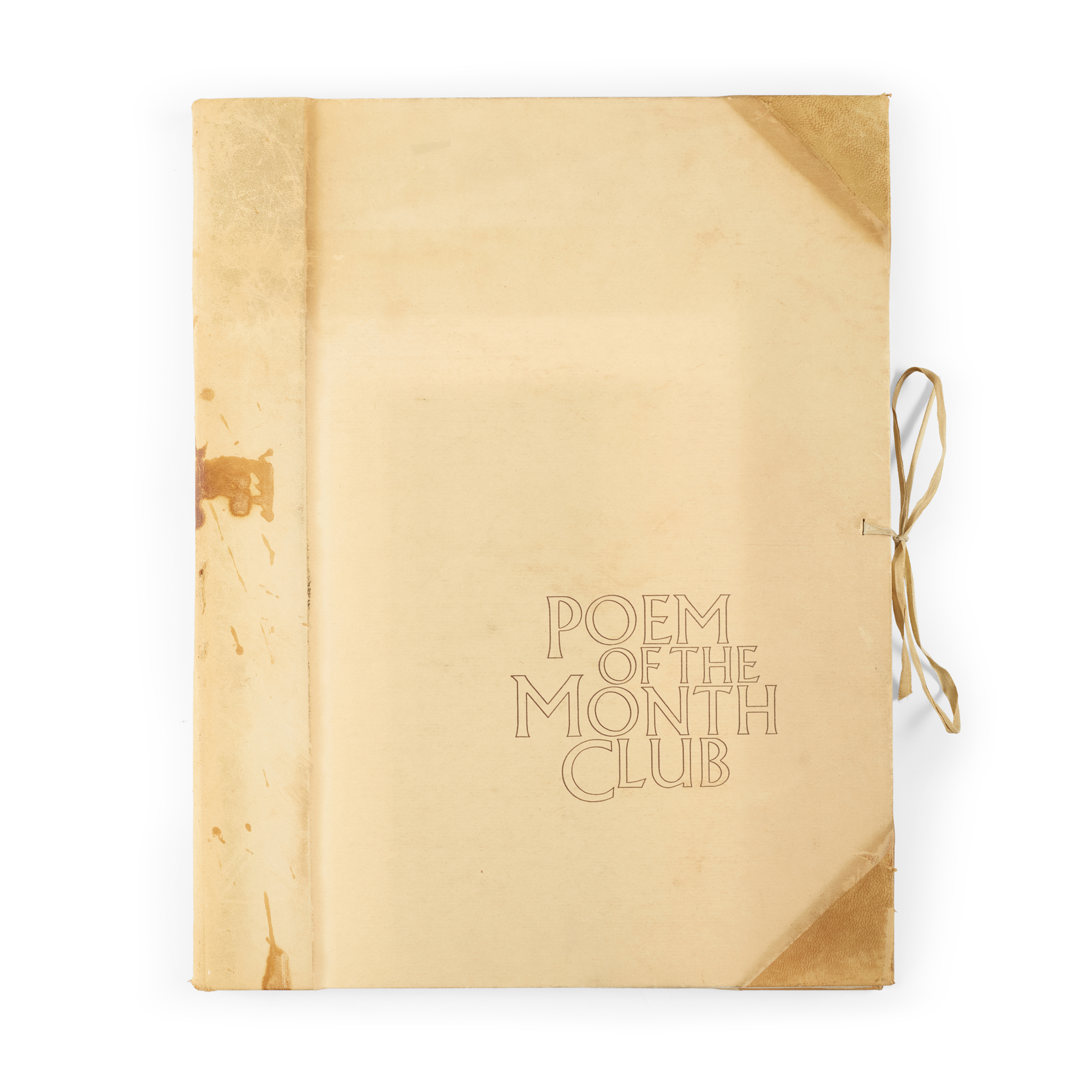 London: Poem of the Month Club, 1970-77. 48 printed broadside poems, 38 x 28cm, each signed in ink by the author, with contributors including Philip Larkin, Steve Smith, W. H. Auden, John Betjeman, Robert Graves, Thom Gunn, Seamus Heaney, and Kingsley Amis (‘A Wembley Lad / The Crem’ by John Betjeman with holograph correction by the author), together with the publisher's printed prospectus and some 24 mimeographed notices and order forms, all loose in the publisher's half sheep portfolio with cloth ties, portfolio rubbed, sunned and marked, faint marks to a few poems