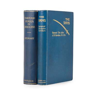 Stewart, Charles E. Through Persia in Disguise. With Reminiscences of the Indian Mutiny … Edited from his Diaries by Basil Stewart. London: George Routledge & Sons, Ltd., 1911. First edition, presentation copy, inscribed by Stewart's widow Annie N. Stewart (signed 'A N Stewart') on the front free endpaper, 8vo, original blue cloth lettered in gilt, top edge gilt, 17 halftone plates including frontispiece, folding plate including inset map of ‘Russian petroleum districts', one further map in text, advertisement leaf to rear, ownership inscription to front pastedown (2)