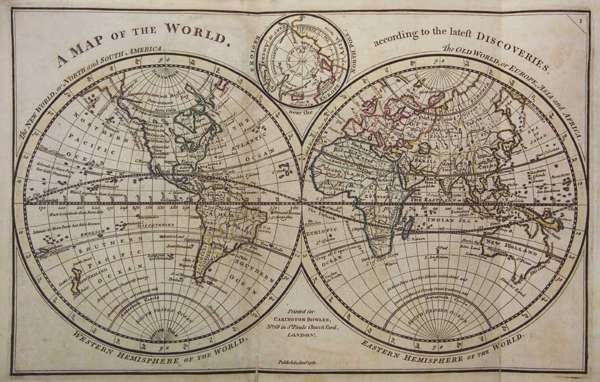 Note: According to Lister. Moll's Atlas minor was first issued in London in 1729, with later editions appearing as "Bowles's atlas minor." Tooley p. 55 (1729) The world map shows the hypothetical east cost of Australia and Tasmania as joined. The map of North America is decsribed as "a new map ... according to the newest observations", but is not showing the alterations to the boundaries of Carolina, etc. in the light of the Treaty of 1763.