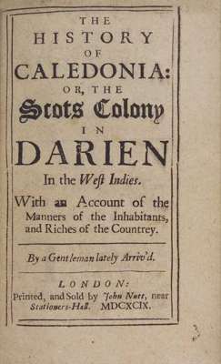 The history of Caledonia: or, the Scots Colony in Darien in the West Indies: with an account of the manners of the inhabitants, and riches of the country, by a gentleman lately arriv'd ... 1st edition, pp. 54, 8vo., London: Nutt, 1699 Note: Wing H 2114