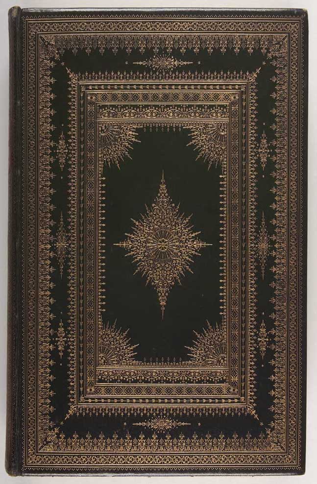 The paradise lost ... with illustrations by John Martin ... With 24 mezzotint plates, full polished green morocco antique style binding over bevelled boards, the covers tooled in gilt with a border made up of fillets and rolls, a panel of fillets and rolls with elaborately tooled corners and a central ornament, the spine decorated gilt, with red morocco shield shaped lettering piece, inner gilt dentelles, a.e.g., a few scuff marks to the lower cover, titlepage loose, some spotting of the plate margins, large 4to., London: Henry Washbourne, 1853