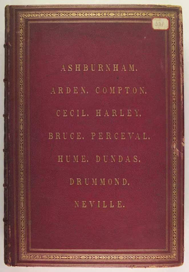Histories of noble British families with biographical notices of the most distinguished individuals in each: illustrated by their armorial bearings portraits monuments seals, etc. ... 1st edition, 2 volumes in 1, with numerous hand coloured coats of arms, illus. (with many col.), with 81 plates (of which 41 are hand coloured), contemporary full red morocco, gilt borders, spine decorated gilt in compartments, inner gilt dentelles, a.e.g., by J. Wright, joints and edges, rubbed, folio, London: Pickering, 1846