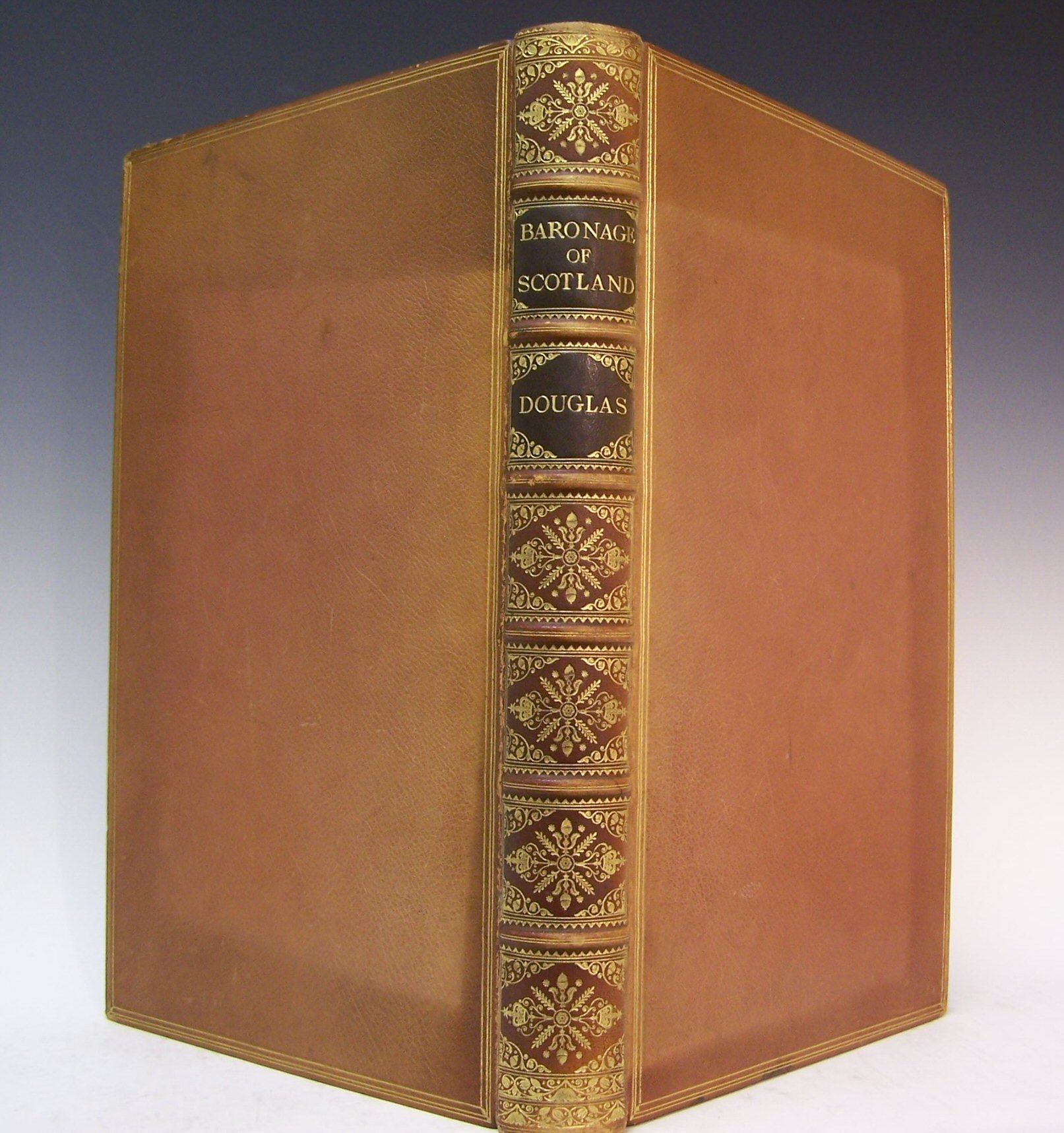 Note: Moule 707. The title-page describes the work as being illustrated with coats of arms. In fact, there are only a handful and these for the families added by the editors who completed the work following the death of Sir Robert. Similarly, a second volume comprising a catalogue of manuscripts and announced at the end of the Preface was never issued. The work was intended to accompany Douglas's Peerage of Scotland and includes an historical account of 153 families.