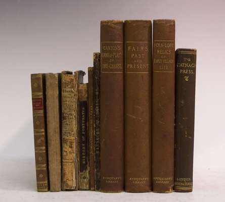 A treatise on the second sight, dreams and apparitions. Edinburgh: Ruddiman, Auld & Co, 1763, 12mo, pp xx [6] 192, later half calf gilt, red label, marble endpapers, rubbed at extremities, contemporary ink notes on original rear endpaper; Hunter, Alexander An Arithmetic, both rational and practical. Ayr: D. Macarter & Co, 1817, pp iv 187, original boards, 15mm tear on upper board, ink stain on pp 144 - 145, uncut; Hoyle, Edmond A Short Treatise on the Game of Whist. London: T Osbourne, 1750, 12mo, 10th edition, pp [2] 224 [15], signed by E. Hoyle and T. Osbourne, original marbled boards, inked paper label, worn, upper board loose; Fortunatus The History of Fortunatus and his two sons. London: T.C., [late 18th Century], pp 168, woodcuts throughout, later full calf, black label, worn, stain on illustrated half title, pp 155 - 160 trimmed [binding fault] some header text missing; and 6 others (10)
