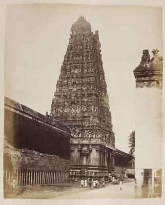 An album containing approximately 50 albumen prints of India (views of Madras, temple and interior palace views at Tanjore, the city of Tanjore), Gibraltar (view of the rock), Suez Canal (various views of the canal, shipping, etc), Egypt (view of the Great Pyramid and Sphinx, fishermen on the Nile, view of Cairo). Circa 1880, approximate size 28cm wide by 24cm high, mounted on card, some signed/ captioned in the negative by Langaki [Egypt and Suez], fading at edges, some foxing, some wrinkling, front board and backstrip detached with two small illustrated pamphlets on Calcutta and Ceylon (3)
